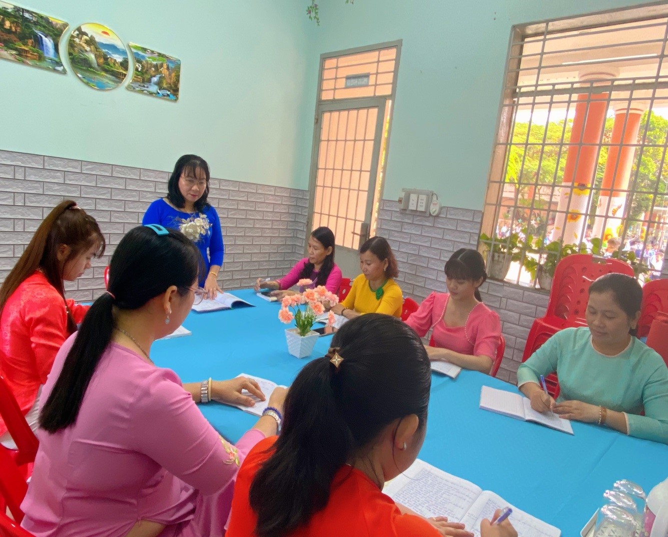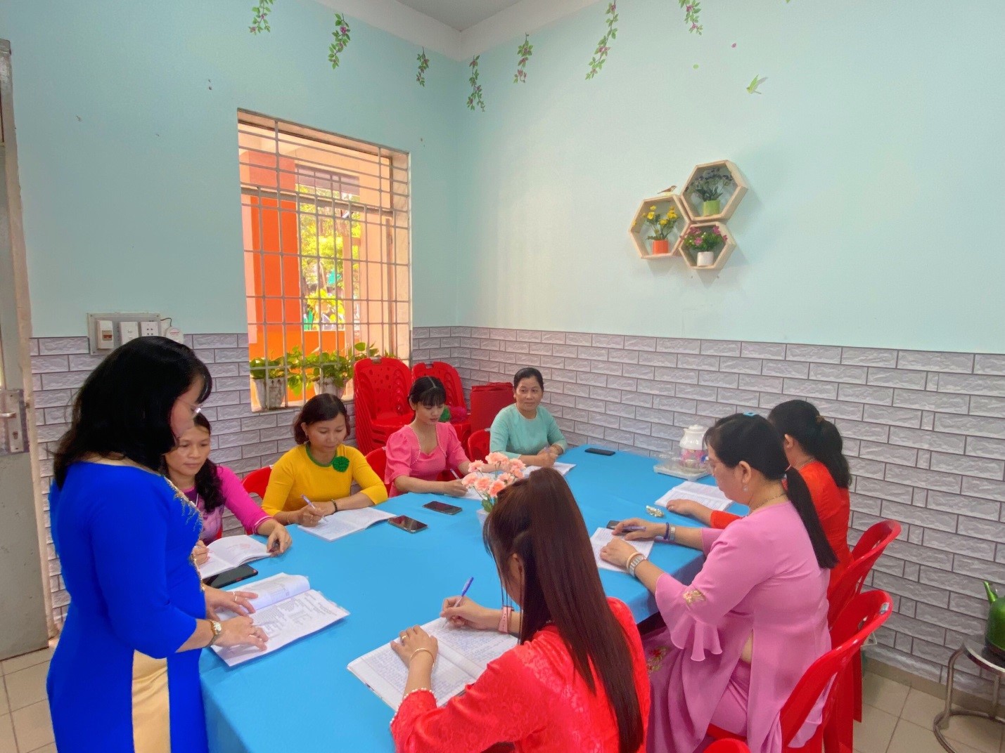 Tại buổi họp, cô tổ trưởng sơ kết các hoạt của tổ diễn ra 2 tuần cuối và đề ra phương hướng 2 tuần tới.